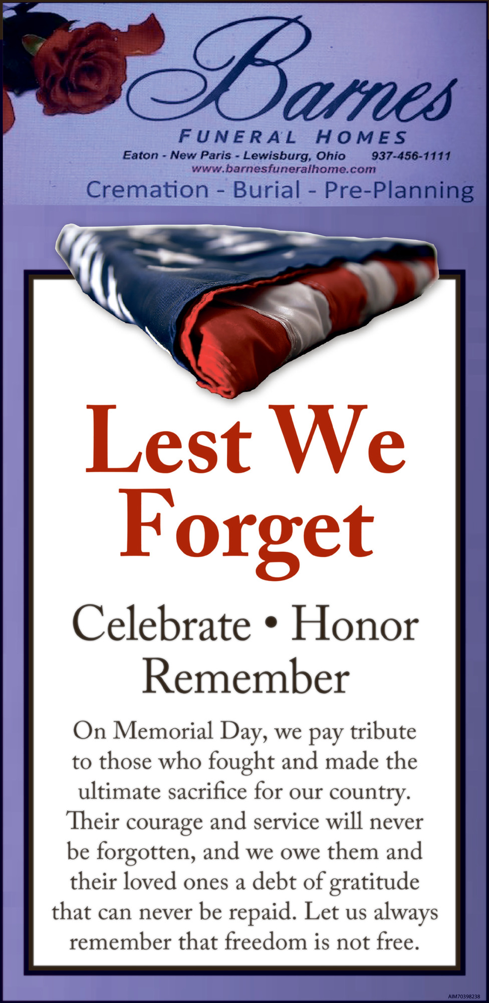 Other Ads from Barnes Funeral Homes, Inc