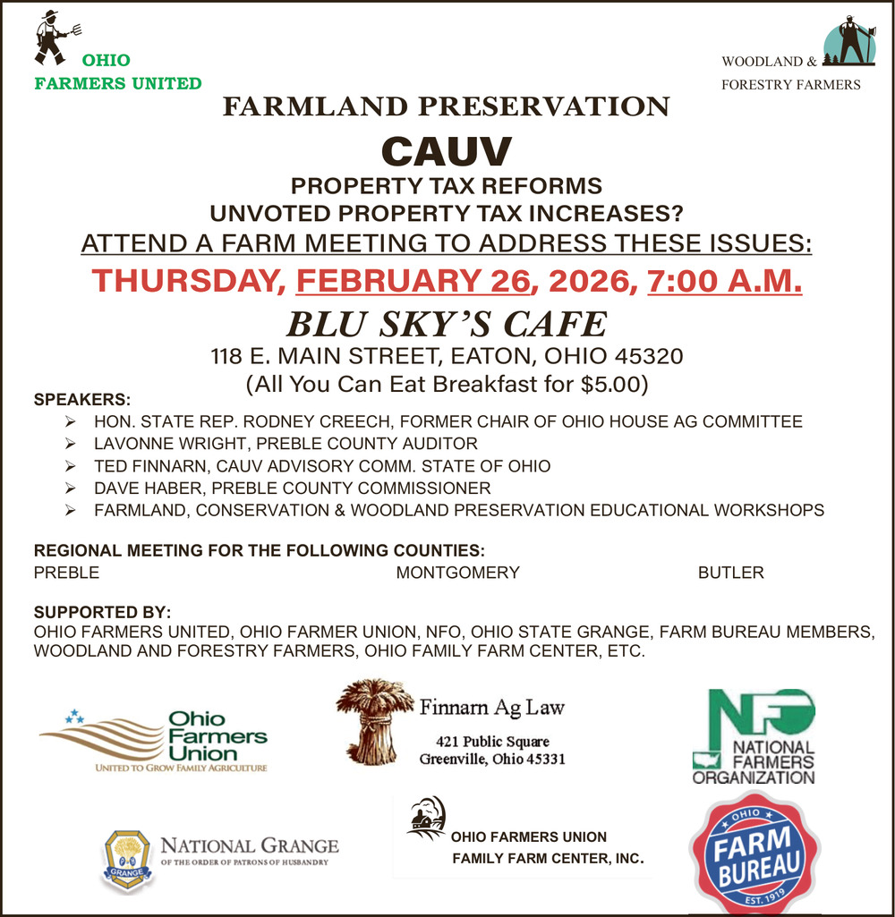 Ads for Farmland Preservation Farm Meeting (February 26, 2026) in Eaton, OH